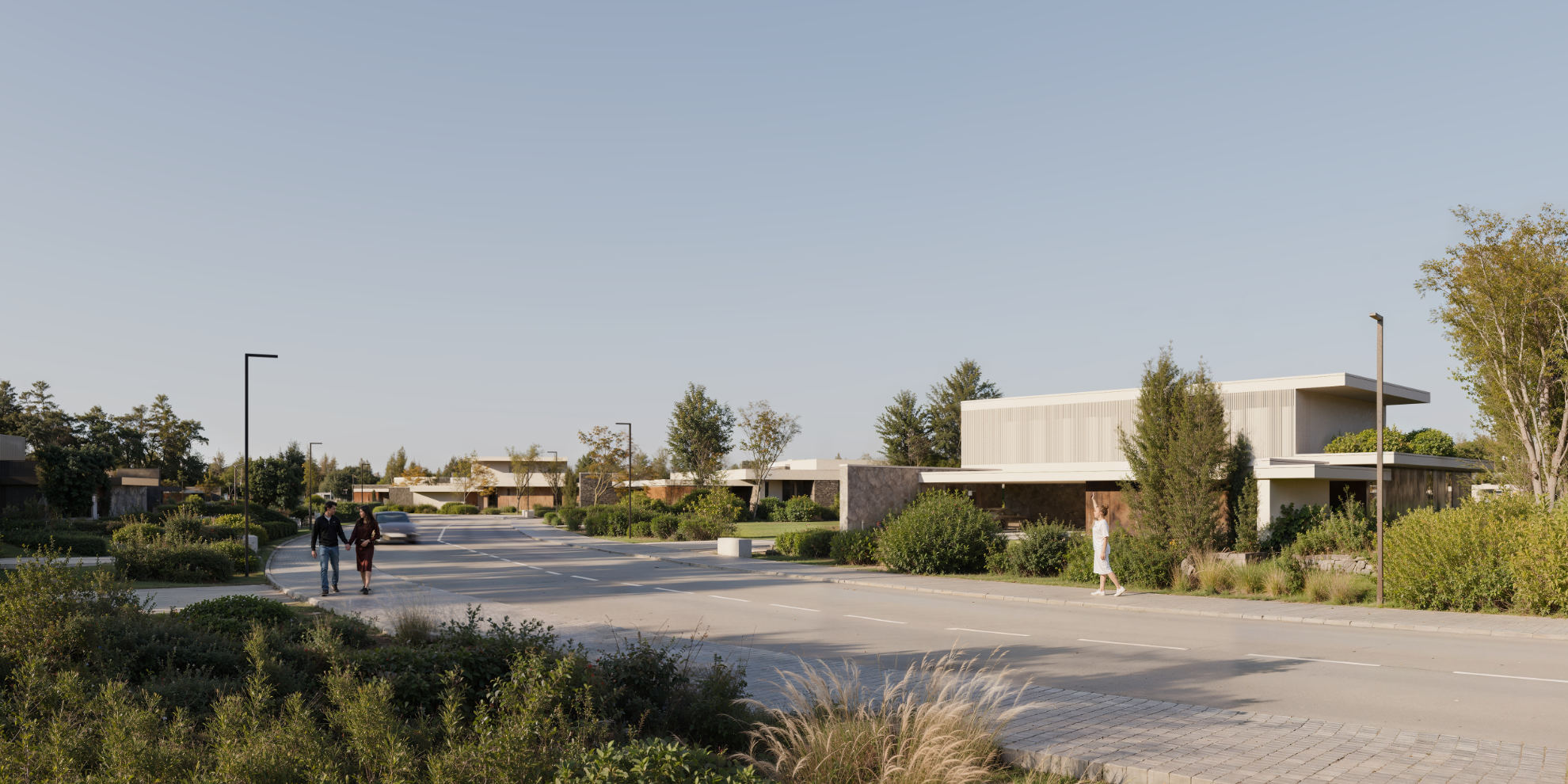 Элегантная, ритмичная застройка вдоль благоустроенного бульвара создаёт атмосферу европейской резиденции. Площади домов — от 330 до 570 м², участков — от 20 до 40 соток. Формат подойдёт для тех, кто ценит архитектурную гармонию, прогулочные маршруты и живую, но камерную среду.